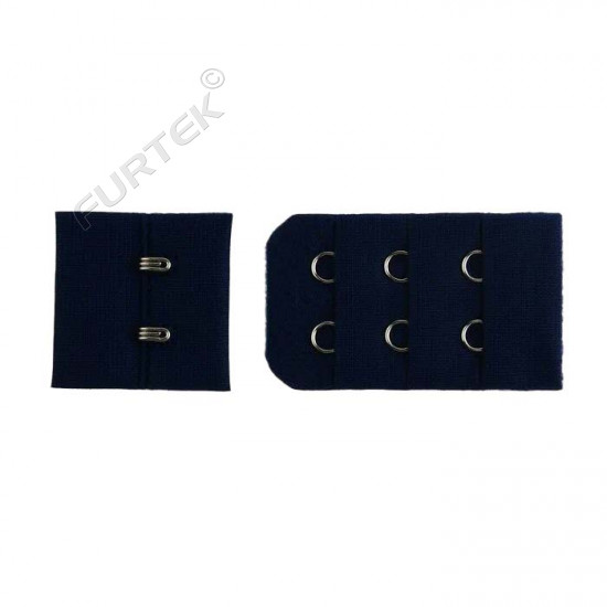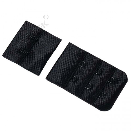 Застежка для бюстгальтера с 2 рядами и 3 крючками - бельевая фурнитура, позволяющая надежно и удобно закрепить застежки на спине бюстгальтера. Применяется для бюстгальтеров среднего и легкого типа поддержки. Состоит из двух частей: одна с тремя крючками в два ряда, другая с петлями, что позволяет регулировать плотность прилегания нижнего белья.