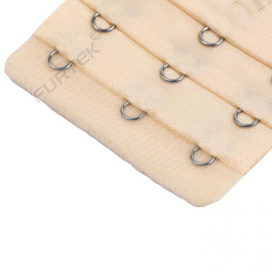 Застежка для бюстгальтера с 3 рядами и 3 крючками - бельевая фурнитура, обеспечивающая надежное и удобное крепление застежек на спине бюстгальтера. Состоит из двух частей: одна с тремя металлическими крючками, другая с тремя рядами петель, за счет чего можно регулировать плотность прилегания нижнего белья.