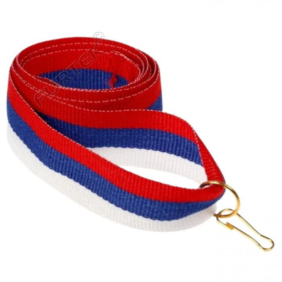 Лента для медали Триколор Премиум - текстильная лента высокого качества, выполненная в цветах российского флага (белый, синий, красный). Плотная ткань придает ленте эстетичный внешний вид, а чёткая печать триколора обеспечивает долговечность и стойкость к стирке и износу.