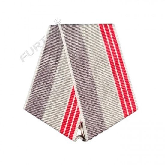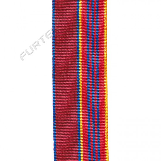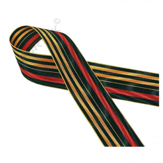 Муаровая лента для медалей - текстильная лента с характерным волнообразным, переливающимся рисунком, создающим эффект мерцания и глубины (муа́р). Для изготовления используют вискозные нити, переплетённые особым способом, что придаёт ткани прочность и изысканный внешний вид.