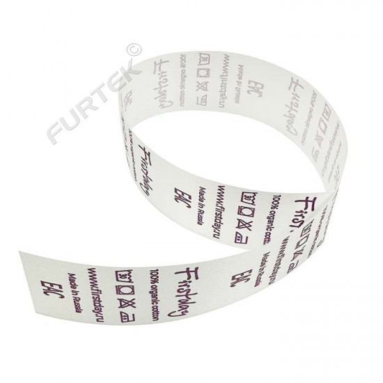 Сатиновая лента шириной 25 мм с особым типом плетения синтетических и хлопчатобумажных нитей применяется для изготовления вшивных ярлыков и маркировки одежды и других изделий из текстиля.