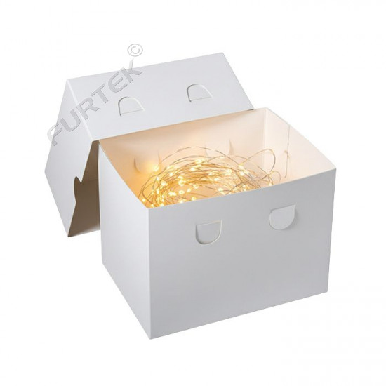 Коробка с крышкой белая с замочками на боковых стенках применяется для упаковки практически всех видов товаров – подарков, сувениров, посуды, статуэток, детских игрушек, наборов для шитья и рукоделия, изделий из текстиля. В качестве дополнительной защиты от повреждений хрупких предметов дополнительно используют наполнитель.