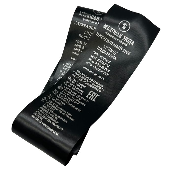 | Сатин / Атлас | Шелкография (Трафаретная) | Имиджевые бирки для горловины, внешние лейблы | Высокая. Плотный слой краски, выдерживает стирку до 60°C. | Средняя |